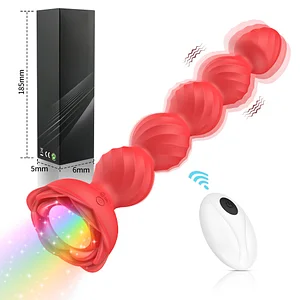 App Remote Control Rose Vibrating Anal Beads With Led Light Red Remote Control