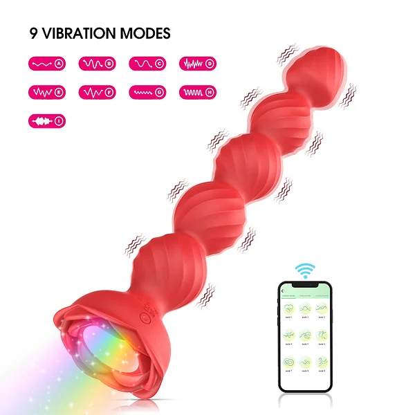 App Remote Control Rose Vibrating Anal Beads With Led Light Black App