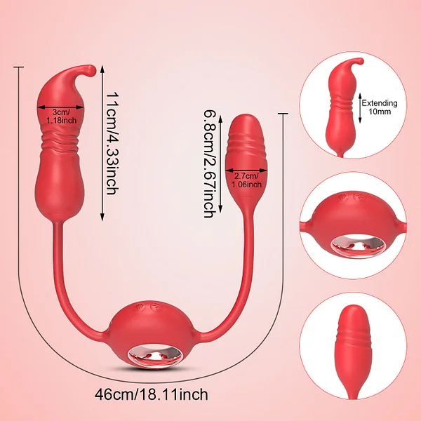 Remote Control Dual-use Thrusting Dildo & Bullet Vibrator Red,